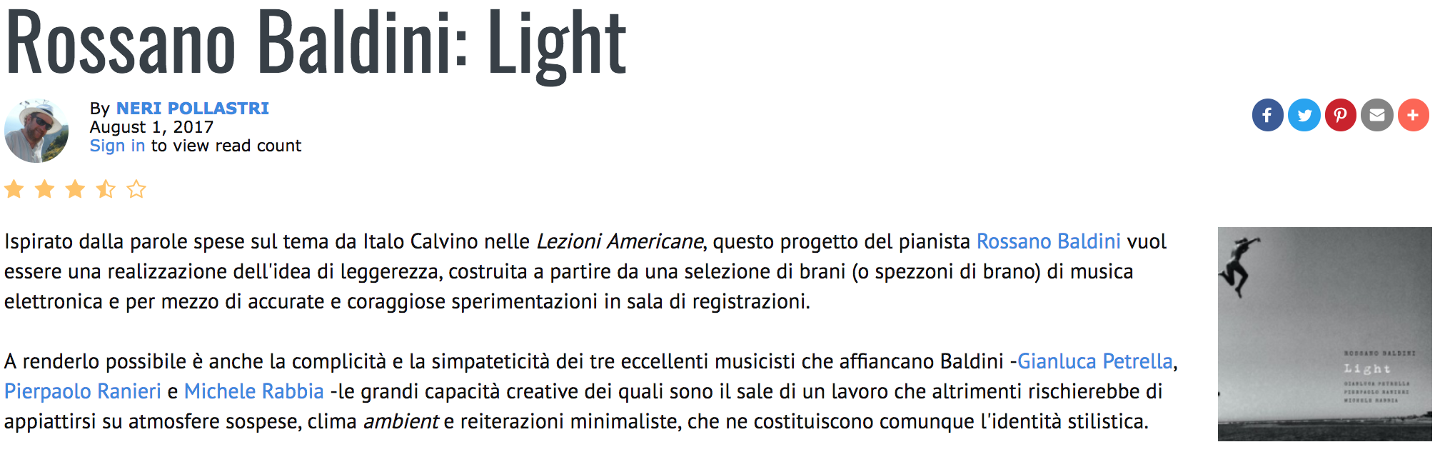 Neri Pollastri, Agosto 2017 – All About Jazz Italia